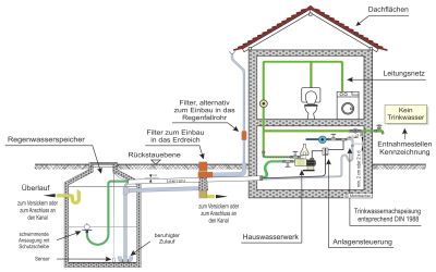 Regenwassernutzung im Haus.